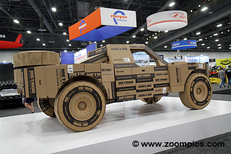 A full-size, detail-correct Trophy Truck built entirely out of Method shipping boxes was on display in the West Hall.